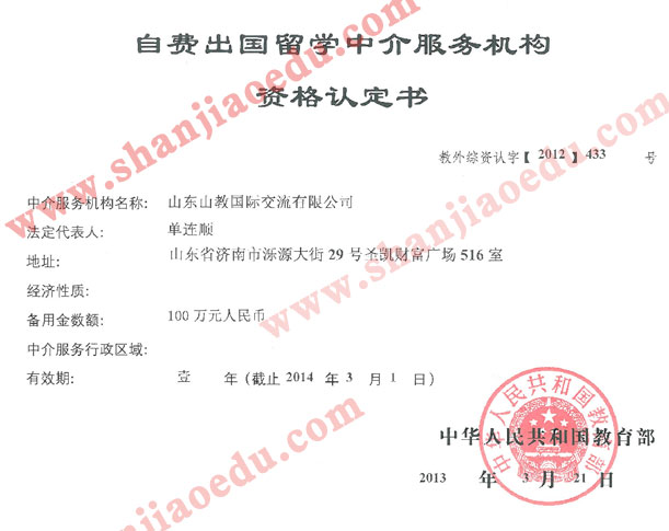 山教留学资质(原)