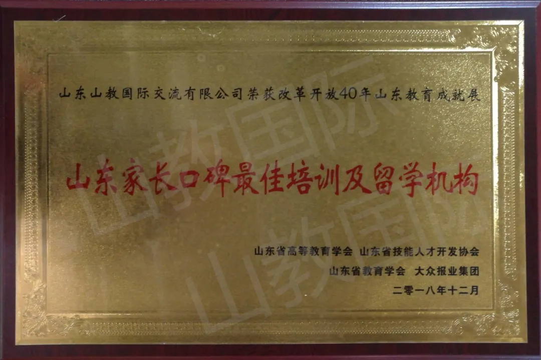2018年 被评为“改革开放40周年山东教育成就展”具有山东家长最佳口碑的培训及留学机构