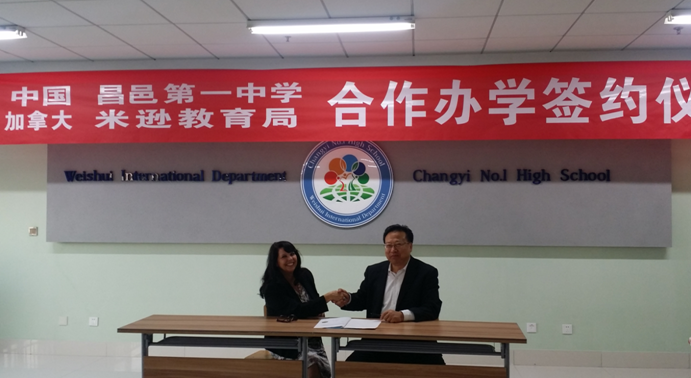 女士访华,单连顺总经理陪同其参观、访问昌邑一中国际部,并与国际部签订友好合作协议,作为昌邑一中国际部首个中加合作,双高中文凭项目。