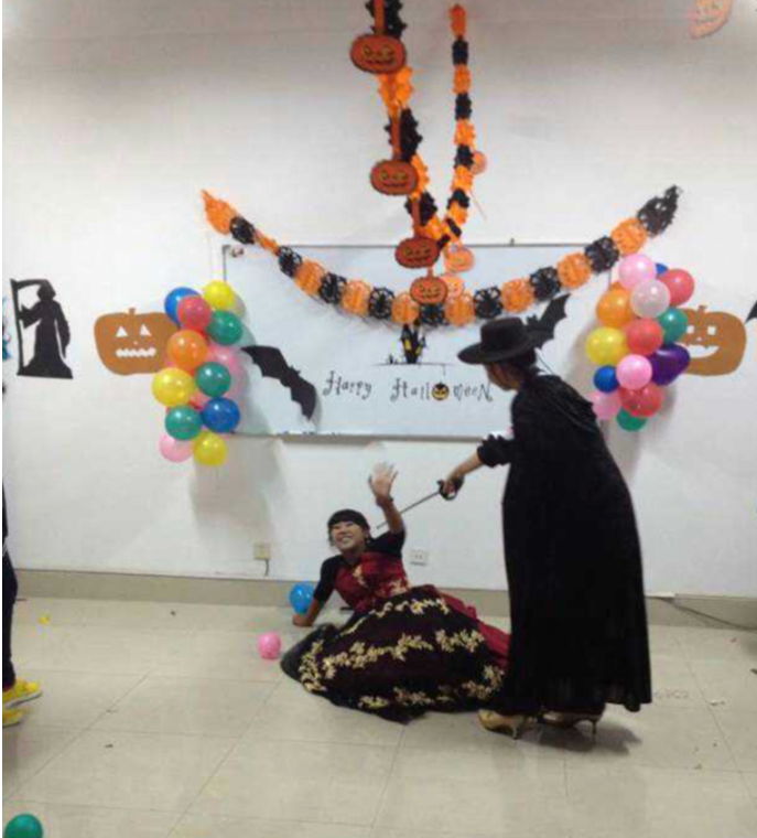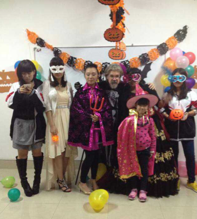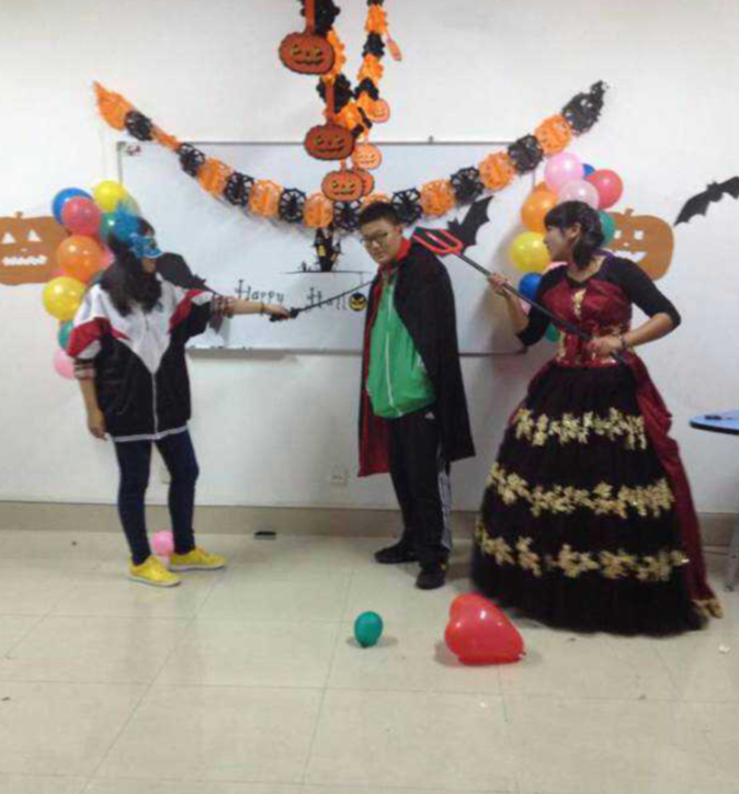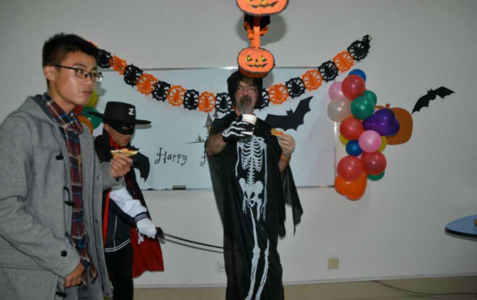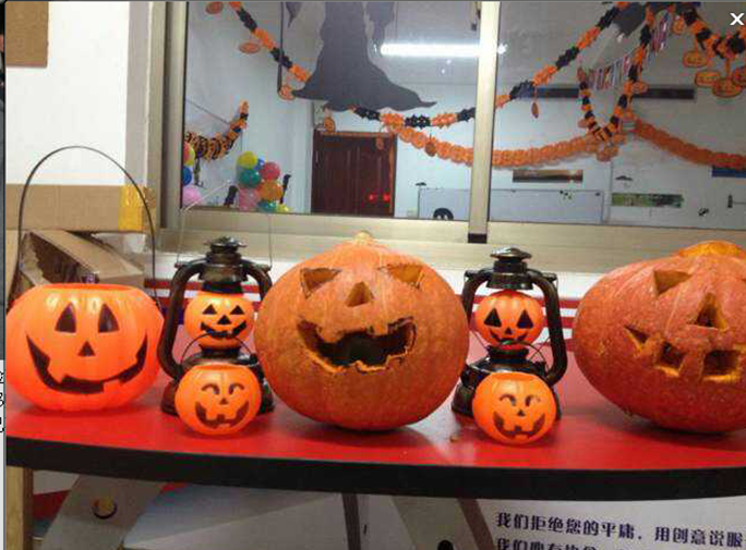 日照实验高中国际部欢度万圣节:2014年10月31日为西方传统节日万圣节,日照实验高中国际部师生举行万圣节化妆晚会共同欢度万圣节,学生们在万圣节当天根据西方习俗,化装成自己喜欢的角色、并在外籍教师的带领下亲手制作南瓜灯。
