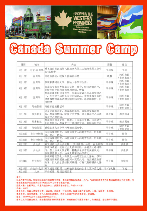 2015年加拿大夏令营开始报名啦
