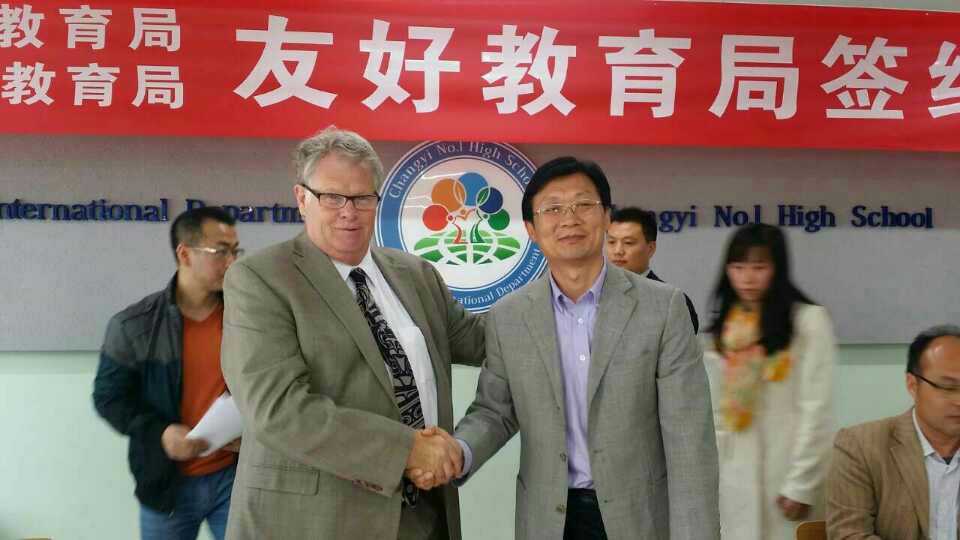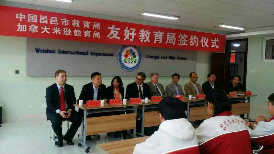 单连顺陪同加拿大米逊市教育局与昌邑市教育局签订合作协议