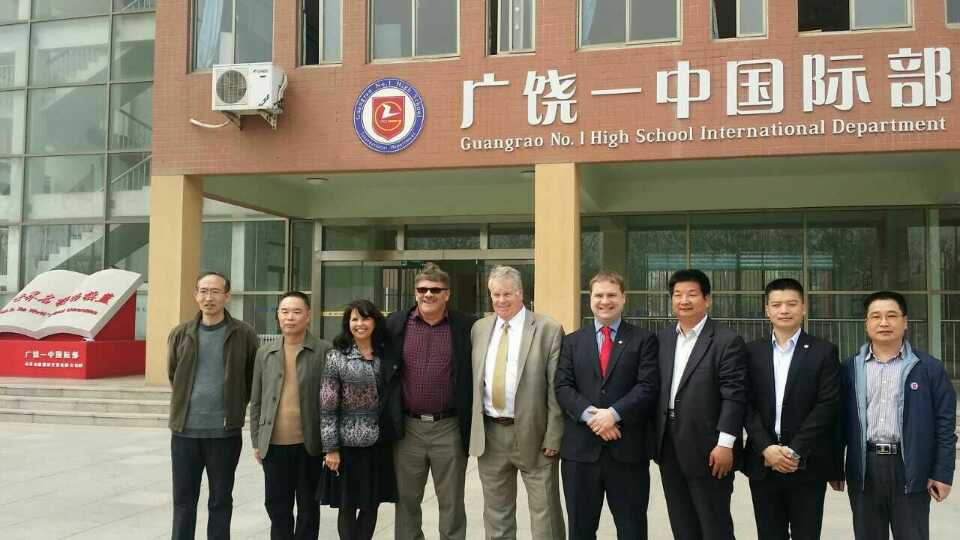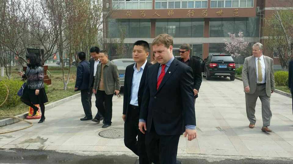 2015年3月31日,单连顺陪同加拿大米逊市教育局代表团访问广饶一中国际部。