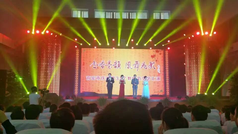 2015年9月2日,山教国际董事长、简达外语校长单连顺受邀参加高密市庆祝”第31个教师节文艺汇演“。