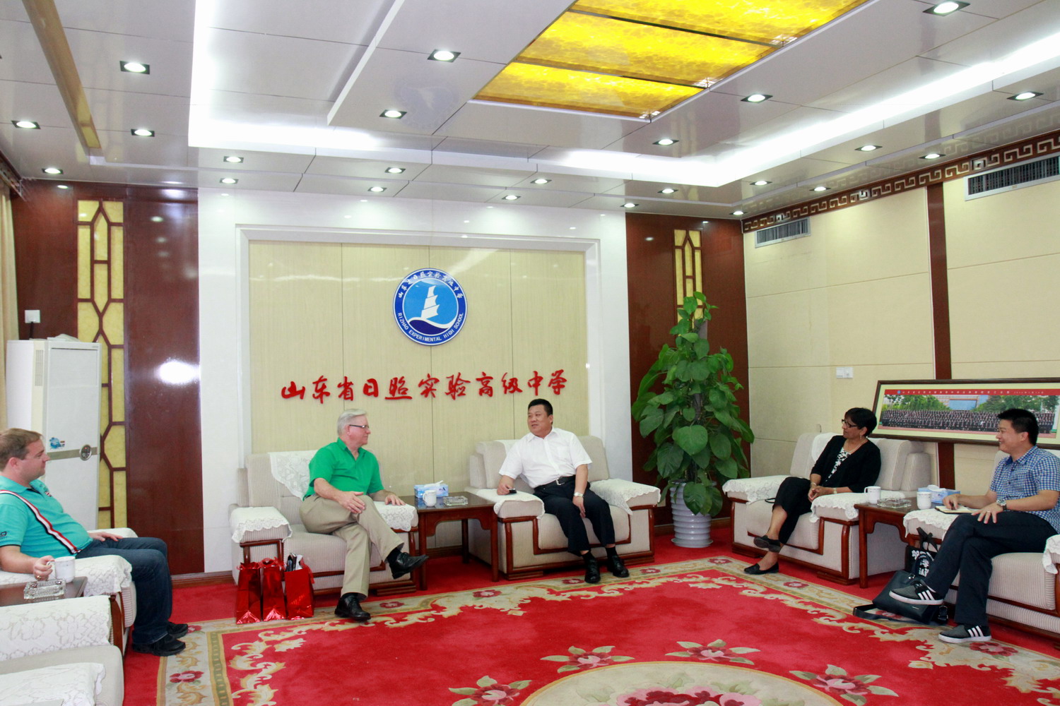 2015年9月5日,单连顺陪同加拿大阿伯茨福市教育局副局长史蒂夫•卡尔顿先生,阿伯茨福市教研室主任kanta女士一行访问日照实验高中。日照实验高中校长郑强热情接待了史蒂夫•卡尔顿先生一行,双方就就两地学生学分互认,完善课程设置,加强两地教师互派交流,开展中加学生冬、夏令营活动等事宜进行了磋商、交流。