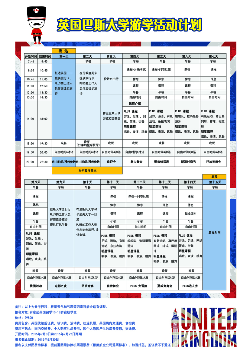英国巴斯大学游学活动计划