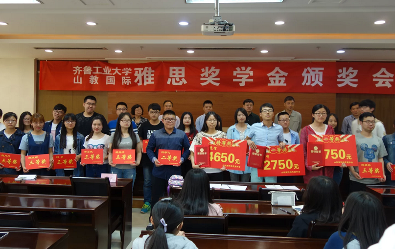 颁奖会由姜洪雷书记主持,姜书记介绍了化工学院及国际班的发展情况,对山教国际在齐鲁工业大学化工学院的第一、二、三届雅思培训工作给予充分肯定,对山教设立奖学金表示感谢。接着姜书记宣读“山教国际雅思奖学金”获奖名单,单连顺与学校领导为26名品学兼优的学生颁发奖学金和荣誉证书。