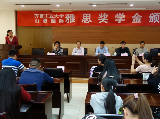 2016年5月10日下午,齐鲁工业大学“山教国际雅思奖学金”颁奖会在齐工大行政楼325会议室举行。山教国际董事长单连顺与齐鲁工业大学化学与制药工程学院书记姜洪雷、齐鲁工业大学教务处处长马万勇、齐鲁工业大学国际交流与合作处处长郑众、化学与制药工程学院副院长崔月芝和周国伟参加颁奖会。