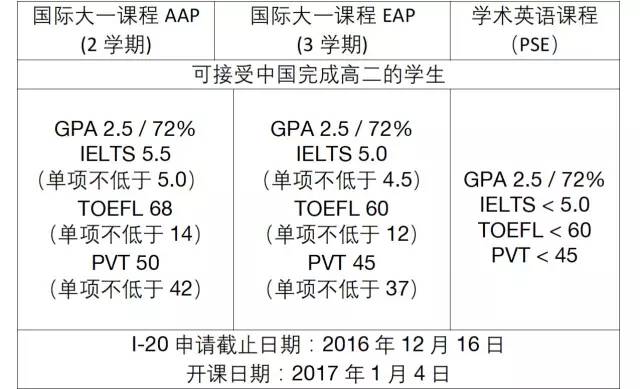 同时,2017年春季入学的每位学生自动获得5000美元的奖学金,以国际大一课程学费减免形式进行发放。(如果学生首先入读语言课程,5,000美金将会在国际大一阶段减免。)