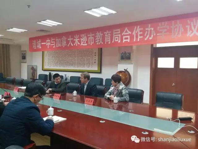 2017年3月13日,加拿大米逊教育局代表Jesse Dorgan 先生与山教国际总经理单连顺先生一行访问山东省诸城一中,与诸城一中校长郑伟明先生及多位领导进行友好会面,在进一步拓展国际教育合作,丰富国际教育资源与模式等方面进行深入探讨,交换理念,并共同签署《山东省诸城一中与加拿大米逊教育局合作办学协议》。双方共同希望能在此协议基础上加强中加双方学校的交流与互访,真正实现教育资源共享,教育经验共享,共同造福双方学生。