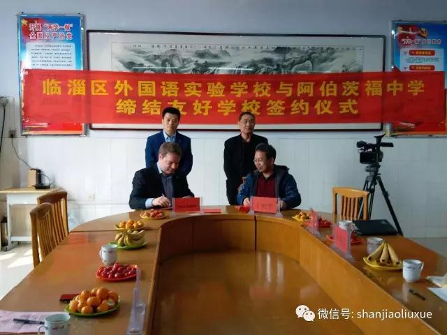 2017年3月18日,临淄外国语实验学校与加拿大阿伯茨福初中签订中加合作办学意向书,正式建立友好合作关系。双方在临淄外语实验学校进行了亲切友好的会晤,大家就资源共享,加强互访等话题进行了友好交流,并对今年夏季组织首批互访师生赴加拿大达成共识,同时山教国际也表示将在临淄外国语实验学校建立“稷下风国际课堂”,引进先进的国际教学资源为学生们提供更丰富的国际化平台。