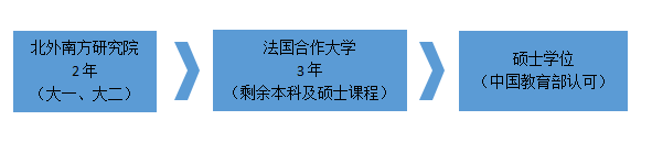 学生在南方研究院就读两年的本科课程,之后将转入与我校合作的法国高等商学院继续学习三年的剩余本科课程及硕士课程,完成学业后可获法国高等商学院的硕士学位。被该项目录取的学生将在中国教育部留学服务中心(中留服)正式注册,研究院将协助学生到中留服进行学位认证。在完成北外阶段学习后,学生也可选择我院其他国家的合作院校继续深造。