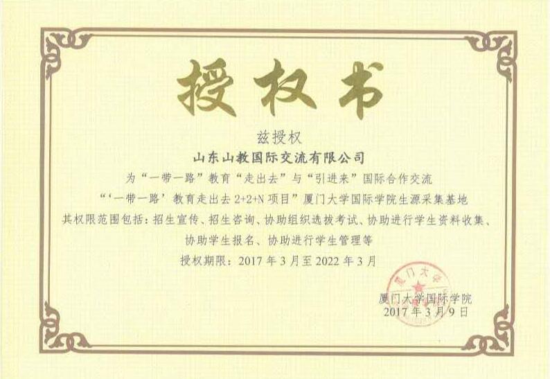 "一带一路“教育”走出去“与”引进来“国际合作交流项目授权书