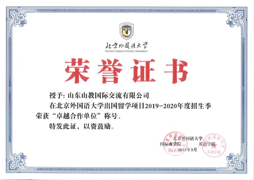 祝贺山教国际成为北京外国语大学卓越合作伙伴