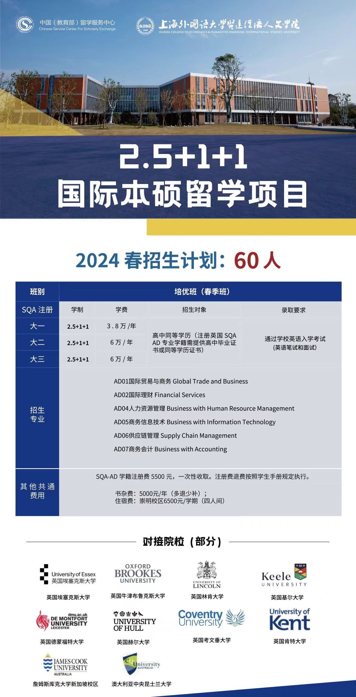2024年春季上外贤达2.5+1+1国际本硕留学项目
