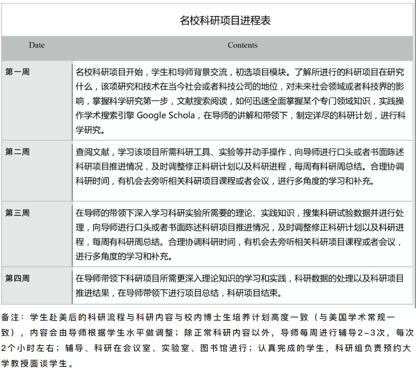 五、名校科研项目进程表Date/Time (确切时间请参看录取确认函)