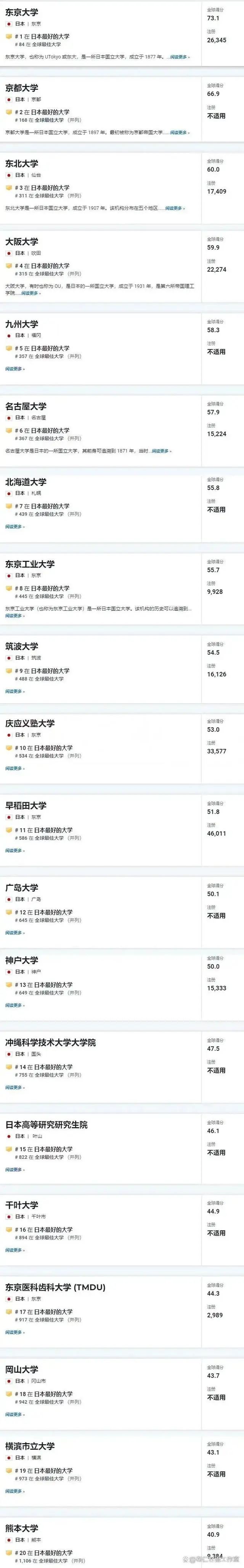 此次日本有112所高校入围,世界百强中东京大学入围,日本排名前三的高校分别是:东京大学、京都大学、东北大学。