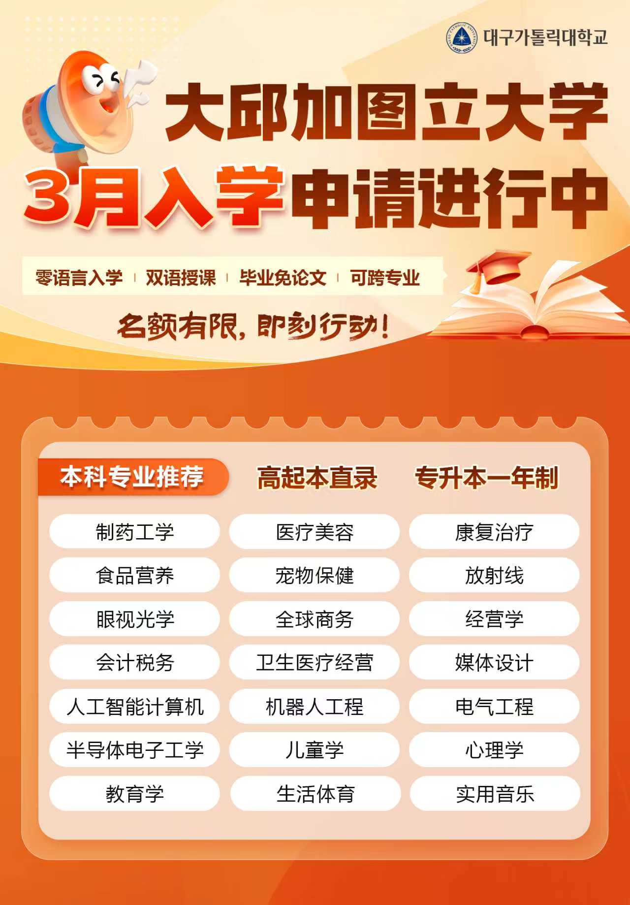 大邱加图立大学3月入学申请进行中