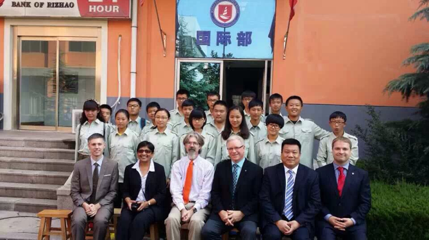 2014年9月19日,单连顺总经理陪同加拿大阿布茨福教育局局长Steve先生、加拿大阿布茨福教育局ESL教研室主任兼校长Kanta女士来日照实验高中访问,并向日照实验高中赠送2010年温哥华冬奥会加拿大冰球队夺冠队服作为合作项目礼物。